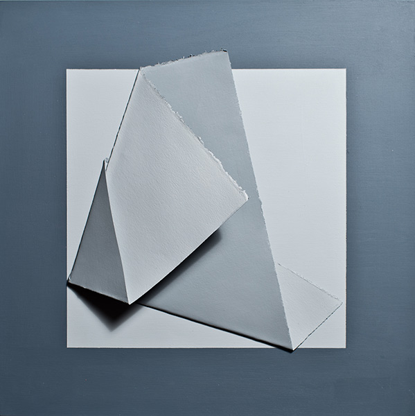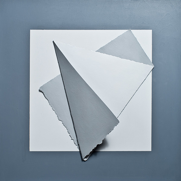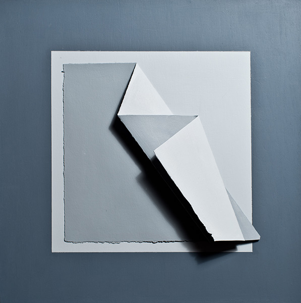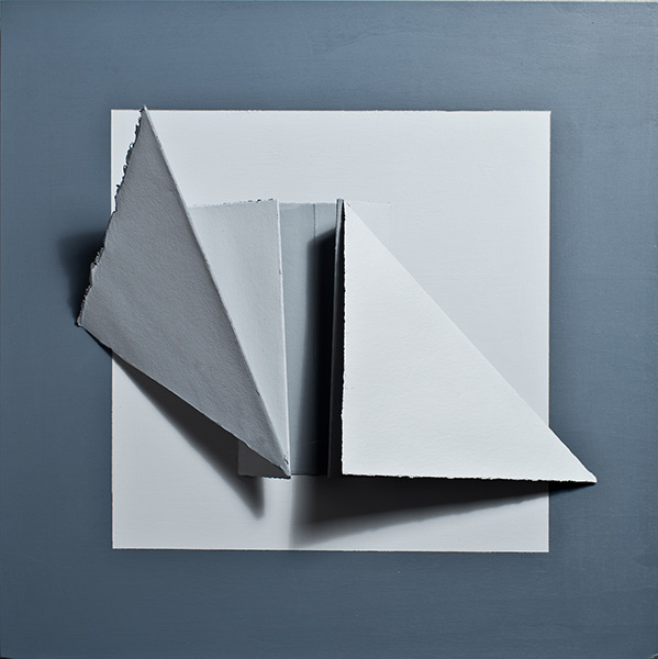 Paint, folded paper on panel